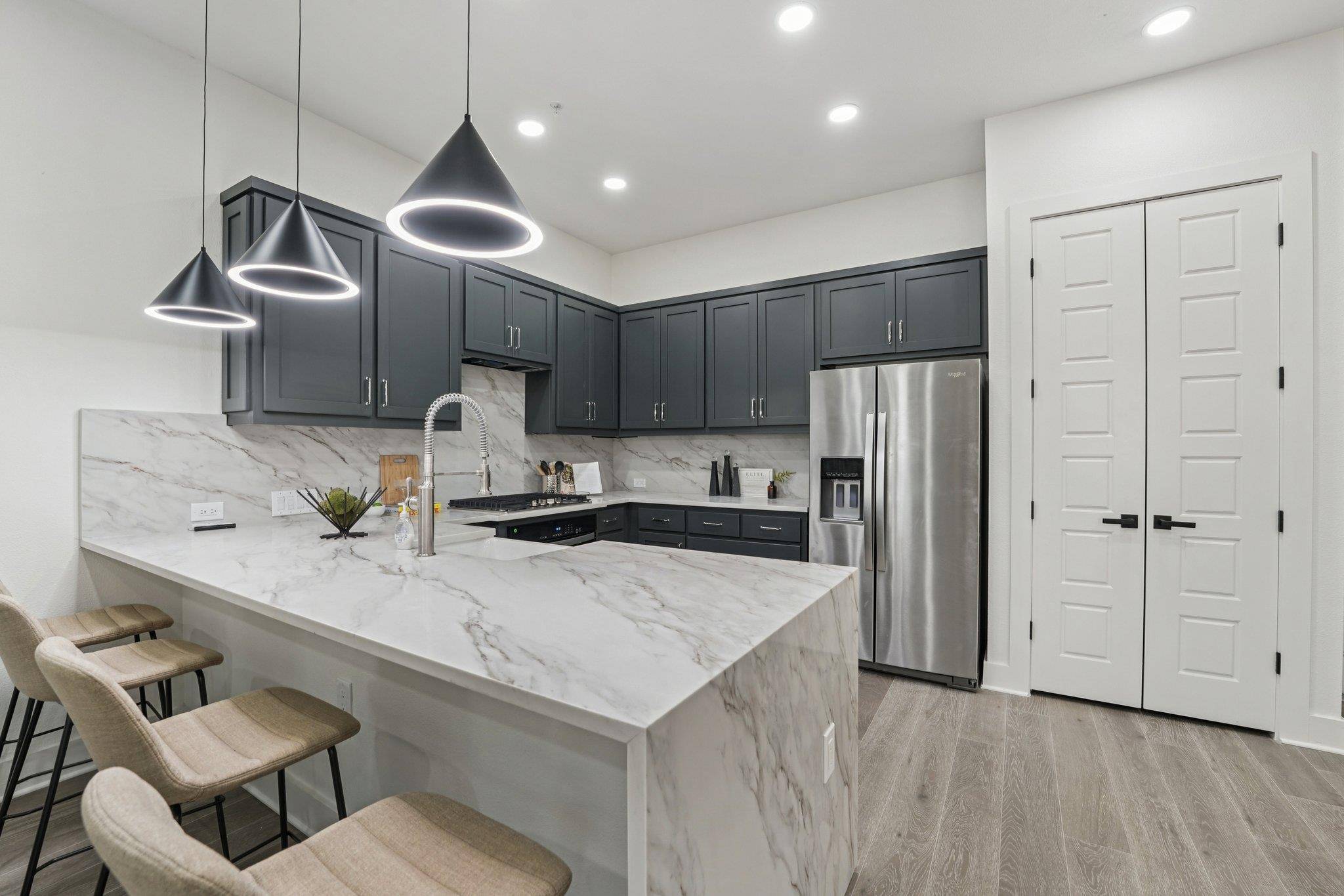 Walk into the first floor entry that flows seamlessly into the eat-in kitchen beautifully upgraded with sleek cabinetry, premium quartz waterfall countertops, stainless steel appliances, and an inviting island perfect for gatherings. The expansive second-floor offers a private primary suite with a spacious retreat complete with a spa-inspired bathroom with dual heads, walk-in shower, and generous closet space while the second, main living area down the hall is filled with natural light and allows for ample entertaining. Additional bedrooms and flexible living areas provide ideal options for home offices, guest accommodations, or multi-use spaces. The third-floor balcony with downtown views adds a desirable outdoor extension to the home—ideal for morning coffee or evening unwinding.